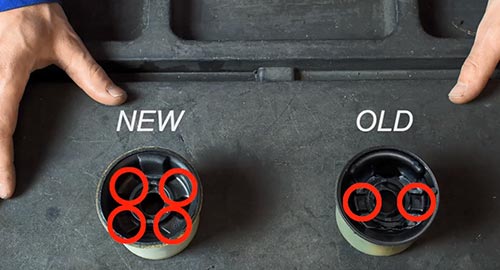 It can be time-consuming and challenging task to replace rubber-to-metal components, like bushings. Bushes are used in various suspension and steering parts, including control arms, stabiliser bars, shock absorbers and strut mounts, as well as engine and transmission mounts. Worn bushes allow metal-on-metal contact, putting stress on the connected parts and, potentially, damaging components. Replacing bushes might sound like the simplest solution, but they are often pressed into a metal sleeve, making them difficult to remove. You might find it easier to replace the parts around the bush, especially as a worn bush may indicate that the parts themselves are getting worn. If you decide to only replace the bushes, it is recommended to use job-specific tools, such as a hydraulic press, for a precise and professional result. Additionally, look for polyurethane bushes, as these are usually cheaper than the original rubber ones, plus they’re more resistant to the environment, for a longer lifespan.