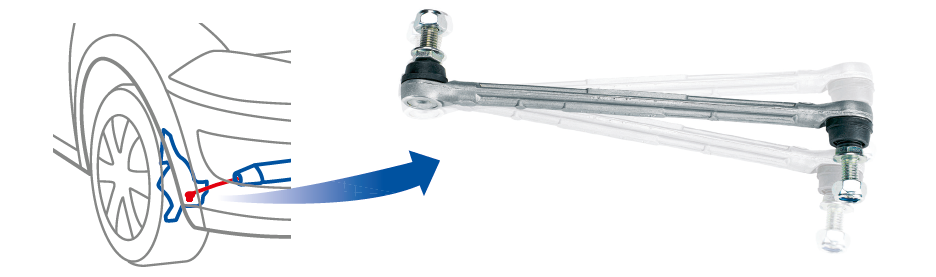 The stabiliser bar connects the left and right suspensions to each other. The link stabiliser secures the anti-roll bar to the wheel assembly. It allows movement and suspension travel.