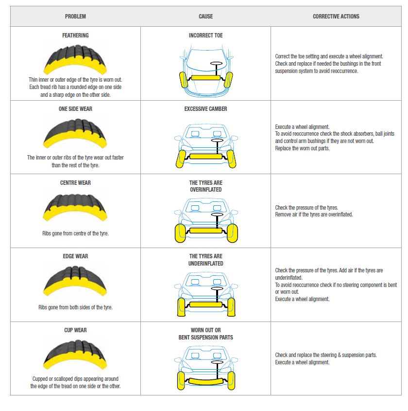 • Does the wear pattern on your tyres look odd?