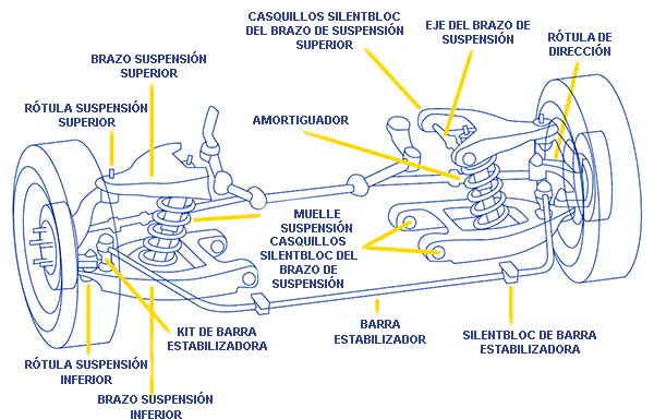 Dicho de forma sencilla, el sistema de suspensión conecta el vehículo a sus ruedas. Haciéndolo, se responsabiliza de dos funciones principales:
